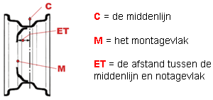 De wielbolling ( ET waarde) bepaalt in hoeverre de velg met band meer naar binnen of naar buiten valt. Als het montagevlak ( M) precies in het midden van de velg zou zitten in er sprake van een ET waarde 0. Hoe hoger de ET waarde is hoe verder het wiel onder de aanhangwagen komt te zitten. En logischerwijs hoe lager de Et waarde hoe verder het wiel naar buiten komt te zitten. Er kan zelfs sprake zijn van een negatieve ET waarde. Gemiddeld genomen is een afwijking van 5 mm acceptabel maar is aan te raden dezelfde ET waardes te hanteren voor de beste wegligging.