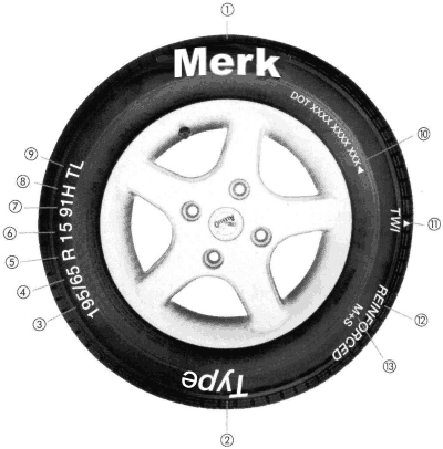 - Laadvermogen ( onder nr. 7: Kenmerk voor de draagkracht van de band)
