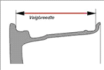 Belangrijk om op te merken is dat de velgbreedte de binnenmaat is zoals in onderstaande tekening schematisch is weergegeven.